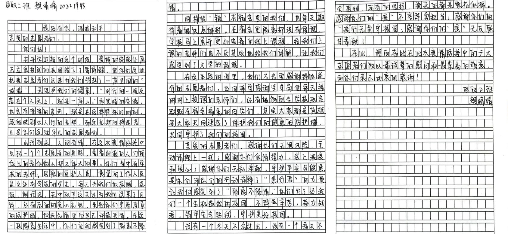 青春灼灼其华,担当历历在目。在此次疫情中,我们的志愿者主动请缨,积极配合医护人员的工作。如今,疫情的圆满结束,pp电子于9月28日在线上开展以“疫路有你,温暖相行”为主题的写信活动。