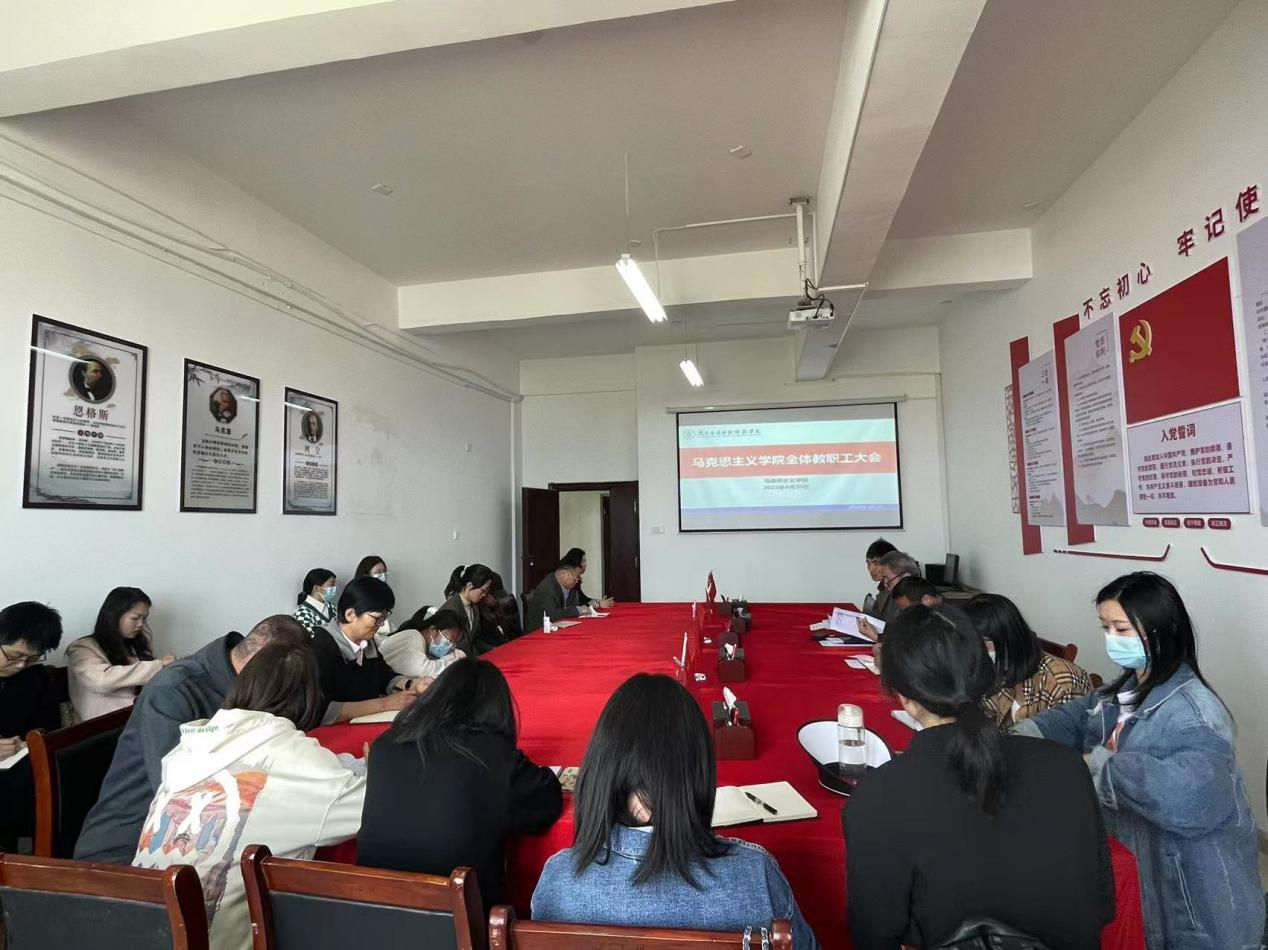 2023年4月26日13:00,在1511会议室召开了全体教职工例会。院长文道贵、党总支副书记桂光泽,各教研室主任、各科室负责人以及学院全体教职工参加此次会议,会议由副院长卢林保主持。