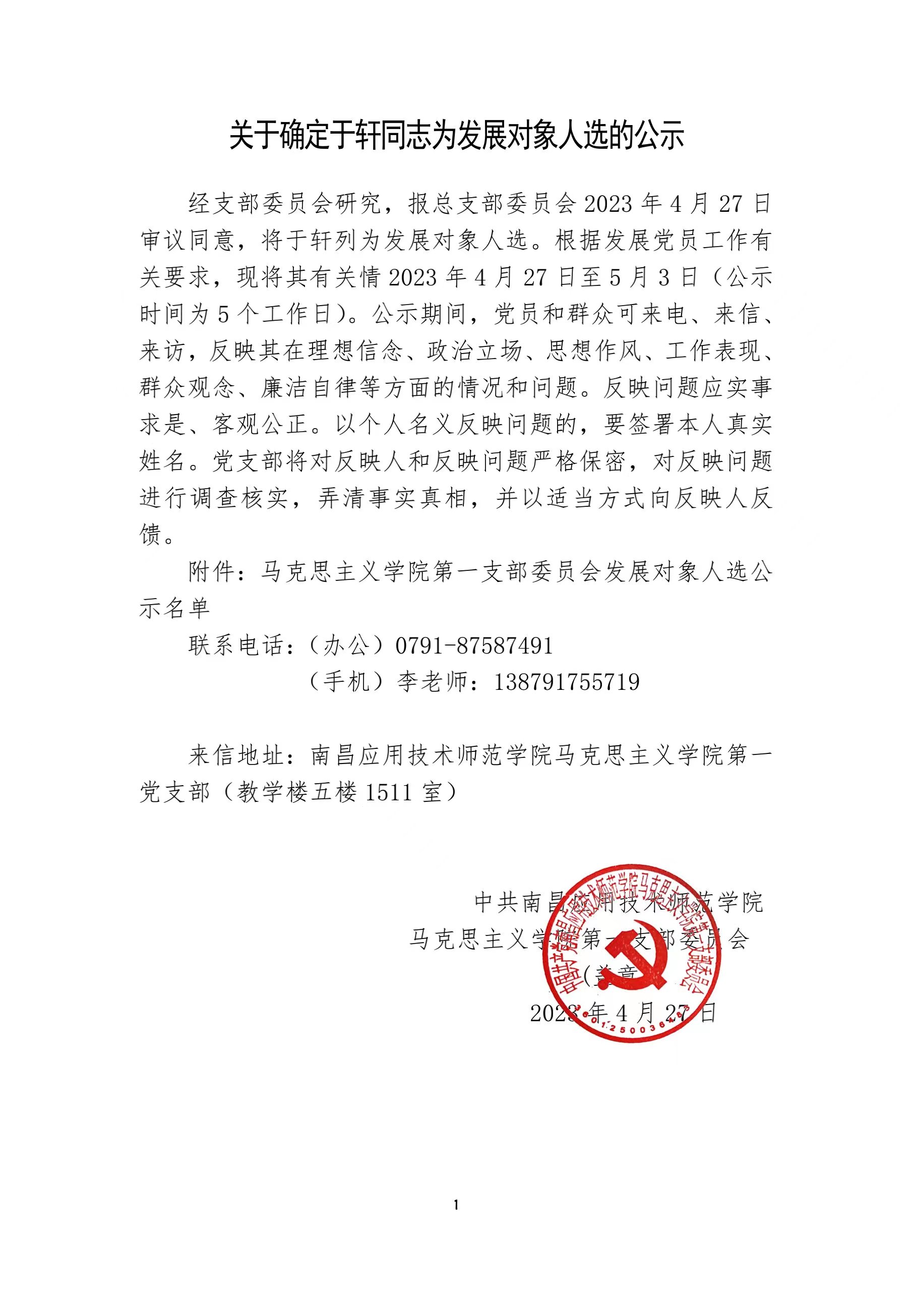 首页栏目 通知公告 学院新闻 习近平思想学习专栏 主题教育学习 院长书记信箱 您现在的位置是:首页 > 首页栏目 > 通知公告 关于确定于轩同志为发展对象人选的公示 管理员2023-04-298350 上一篇 关于确定刘洋等3位同志为发展对象人选的公示 下一篇 pp电子第一支部委员会入党积极分子备案名单