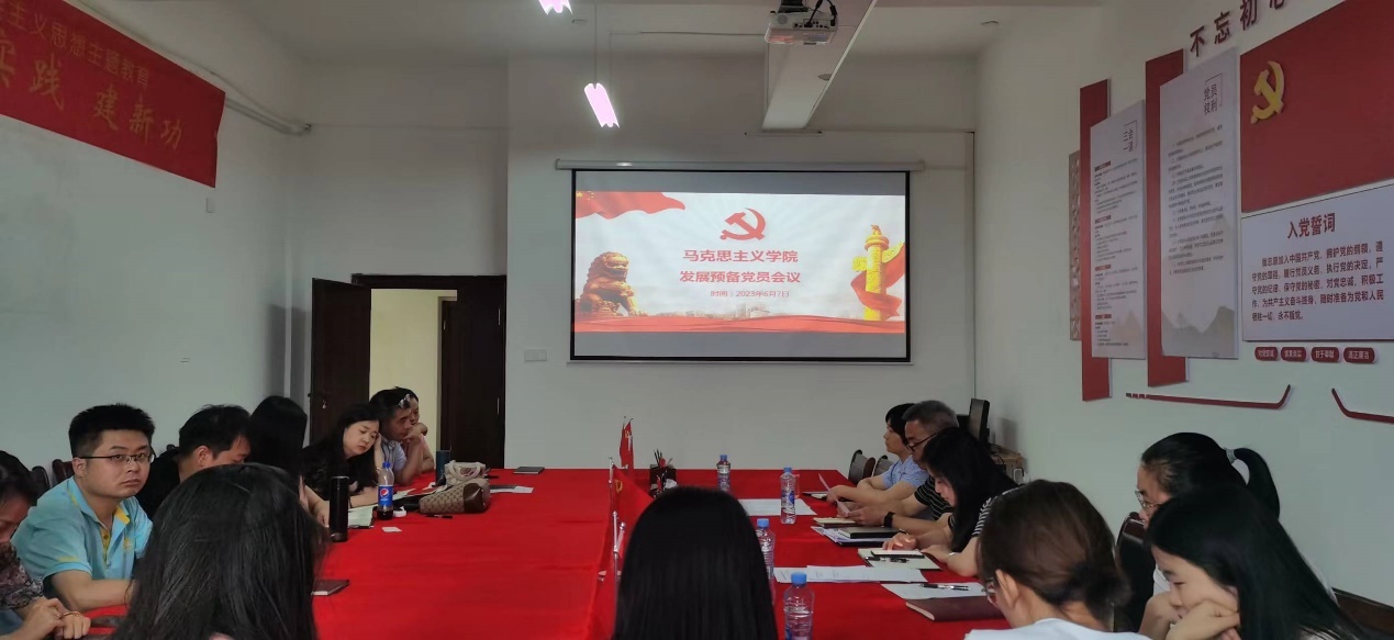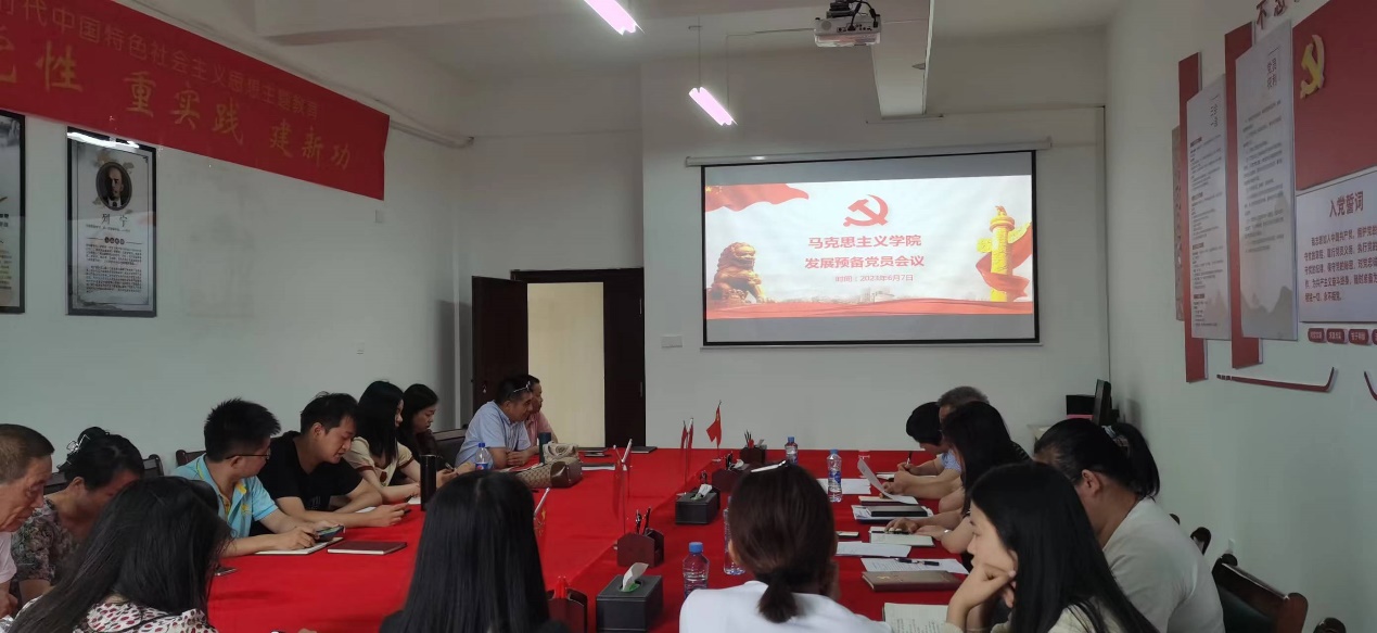 会议严格按照党组织所规定的预备党员接收程序进行。会议伊始,发展对象于轩同志汇报基本情况,阐述入党动机。入党介绍人介绍于轩同志有关情况,并对其能否入党表明意见。刘德彰同志认为于轩同志思想上积极向上,言行、学习等方面均向党中央靠拢,工作认真,教学能力强,在生活方面与人为善;张丹同志认为于轩同志作为教研室主任,在工作方面具有担当,积极踊跃,迎难而上,虽入职时间不长,但表现突出,也能够把学生的发展放上心上,心系学生成长;综上所述,完全同意于轩同志加入中国共产党。