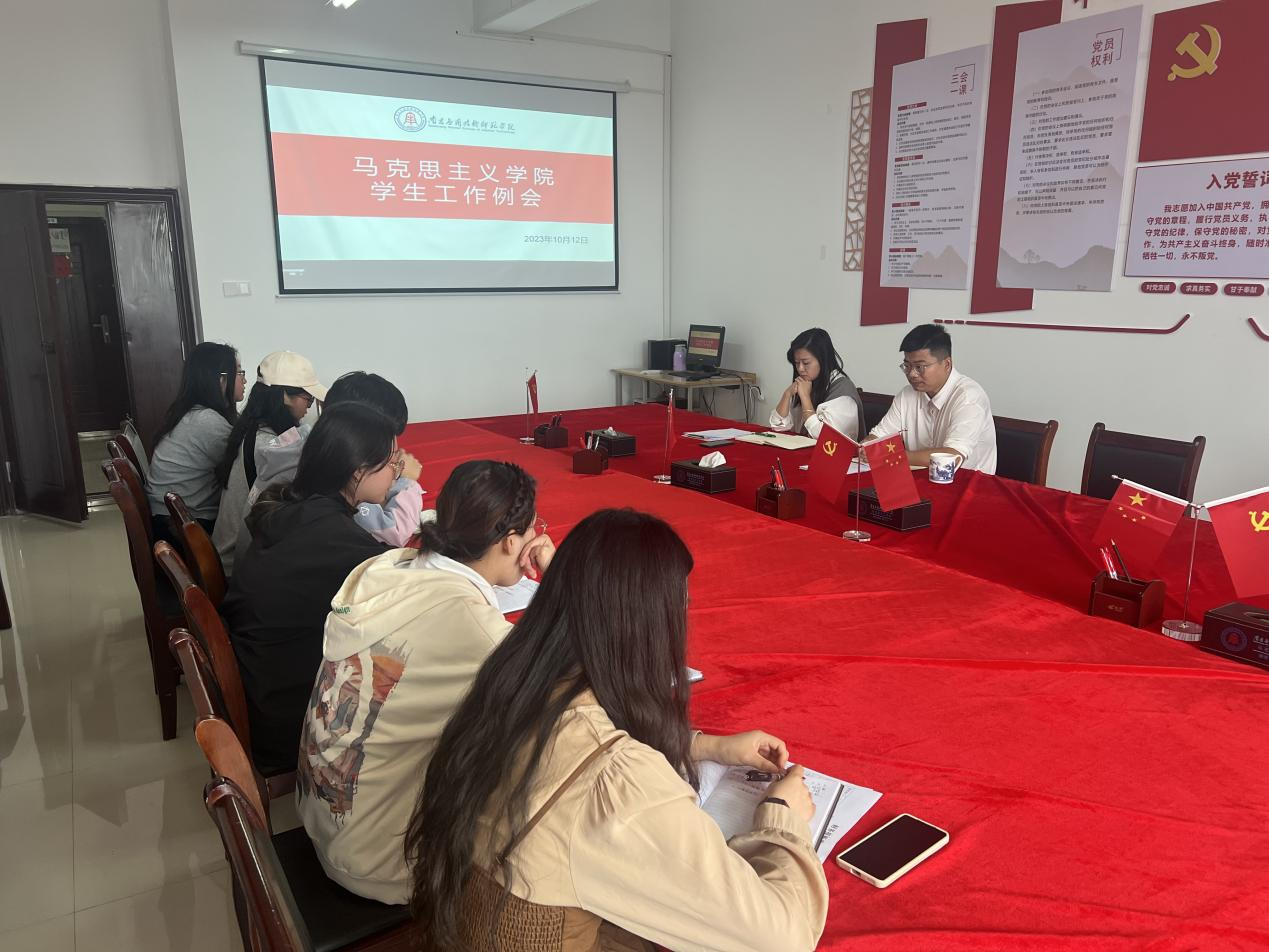 2023年10月12日,为扎实做好学生管理工作,提高学生工作效率,pp电子召开“学生工作例会”,本次会议有pp电子书记张欣康主持,党总支副书记李婷及全体专兼职辅导员参会。