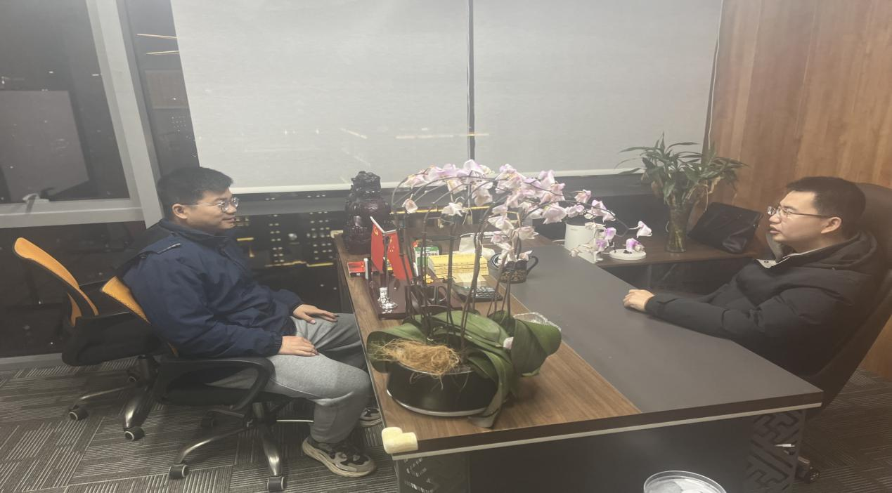 走访过程中,南昌天问网络服务有限公司总经理刘俊涛对张欣康的到来表示热烈欢迎。详细介绍了公司发展情况及用人需求,并表示愿意与pp电子官网建立长期校企合作关系。随后张欣康介绍了pp电子官网的专业设置及人才培养情况,并提到学院目前正在与各企业积极对接,为毕业生拓展就业岗位,提供更优质的就业择业平台。张欣康对刘俊涛校友支持学校发展表示衷心感谢,并表示将推荐优秀毕业生到公司就业。