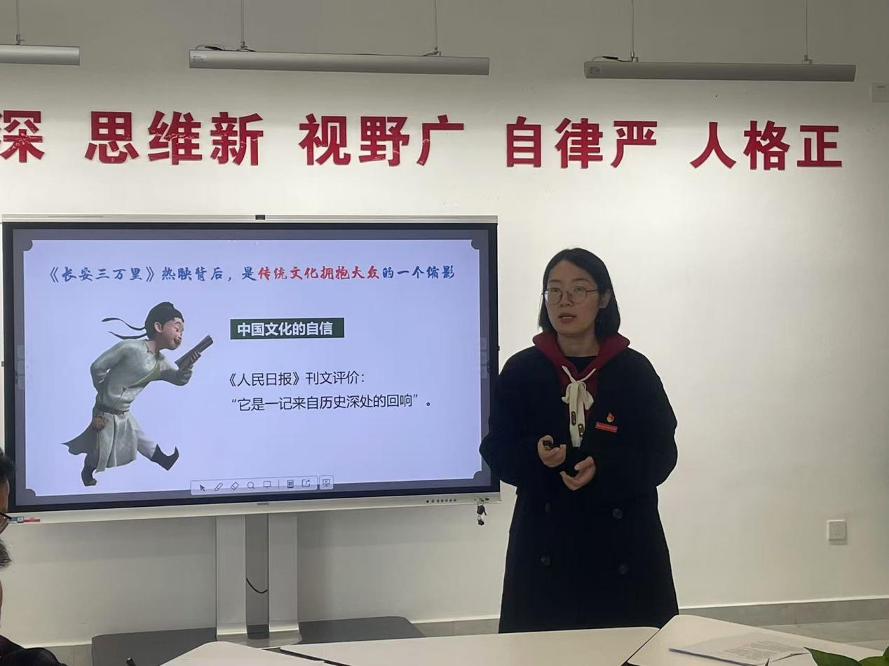 拟参加比赛的青年教师戴瑞轩作为本次磨课活动的展示者,承担着参加校赛和申报省级教学改革的双重任务,她进行了《新四军抗日斗争史》课程教学内容的现场展示。她首先介绍了备课备赛的基本情况、教学设计构思、教学重点难点等内容,并通过生动的案例、深入浅出地讲解,呈现了一堂别开生面的思政课。同时,戴老师还巧妙地运用了视频、音频等多种创新教学手段,增强了课堂的互动性和趣味性。