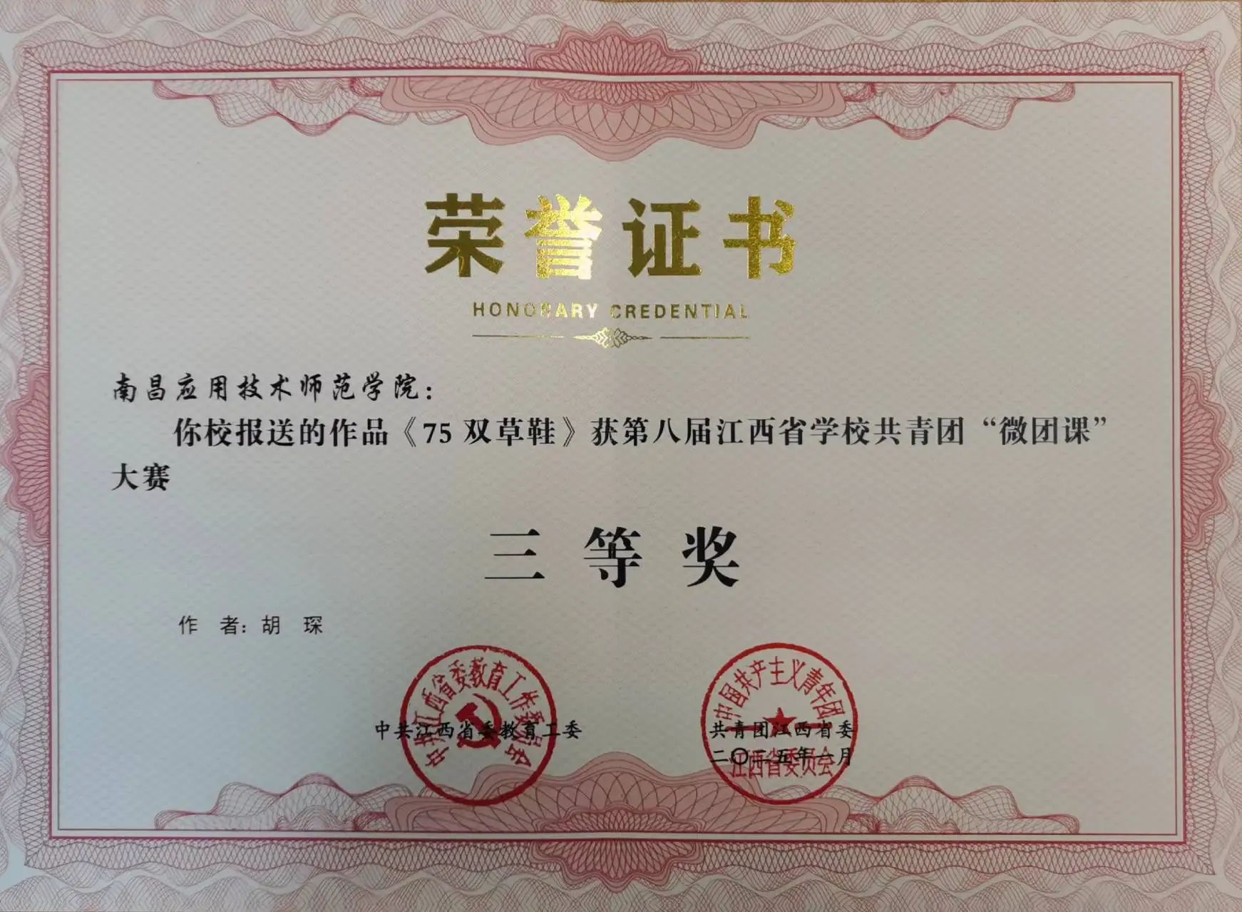 近期,我校师生在省委教育工委、团省委联合举办了第八届江西省学校共青团 “微团课”大赛中取得了优异成绩。其中pp电子官网胡琛老师获三等奖。