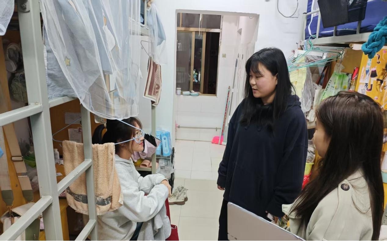 为进一步加强学生宿舍管理,深入了解学生生活需求,营造安全、文明、和谐的校园环境,pp电子党总支副书记雷欢欢携学院辅导员深入学生宿舍,开展安全检查与暖心交流。