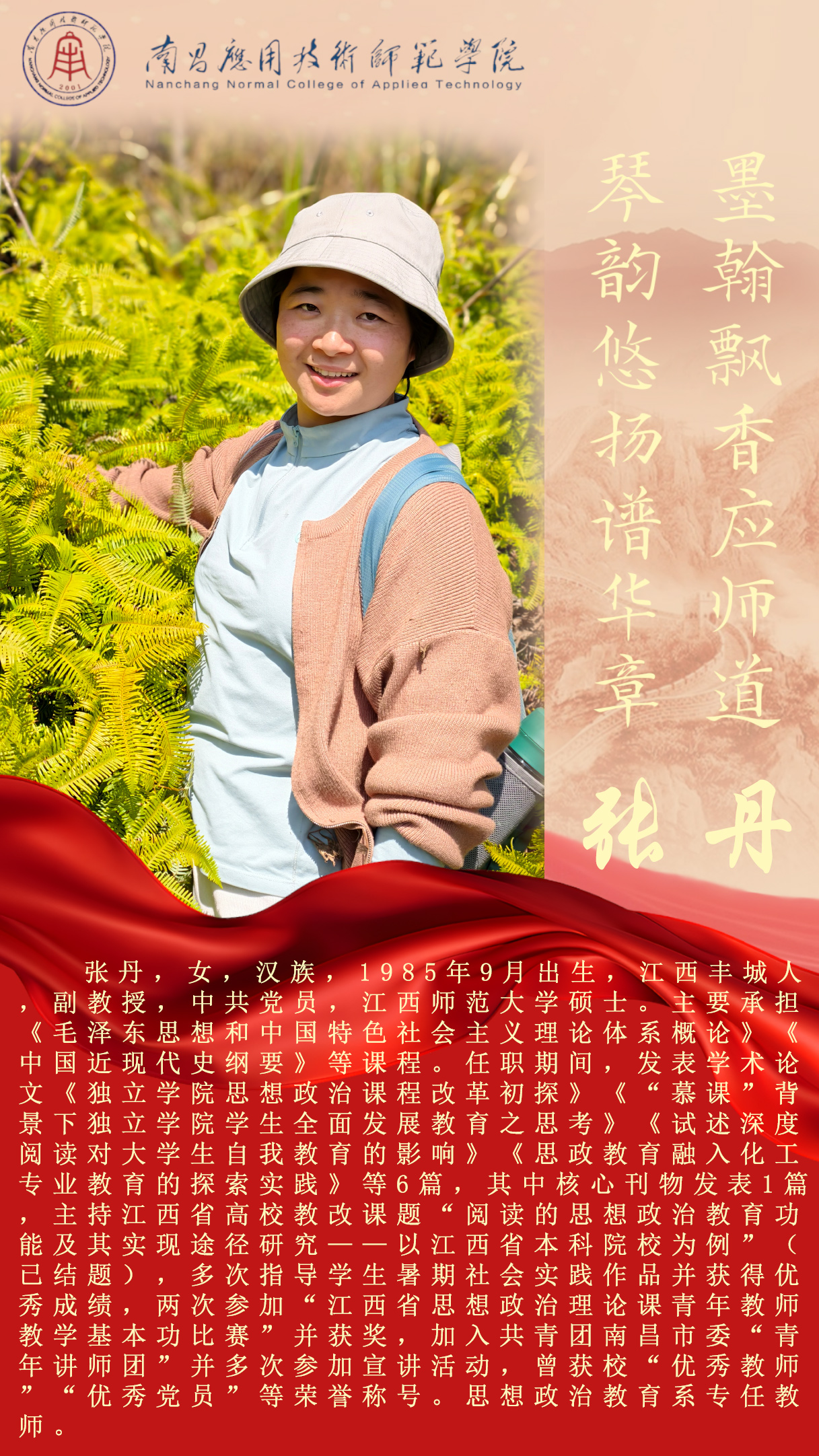 先进典型 优秀毕业生 优秀在校生 优秀教职工 您现在的位置是:首页 > 先进典型 > 优秀教职工 张丹 副教授 综合办2025-04-022028 上一篇 桂光泽 教授 下一篇 敬业育人 默默奉献|优秀教师刘德彰