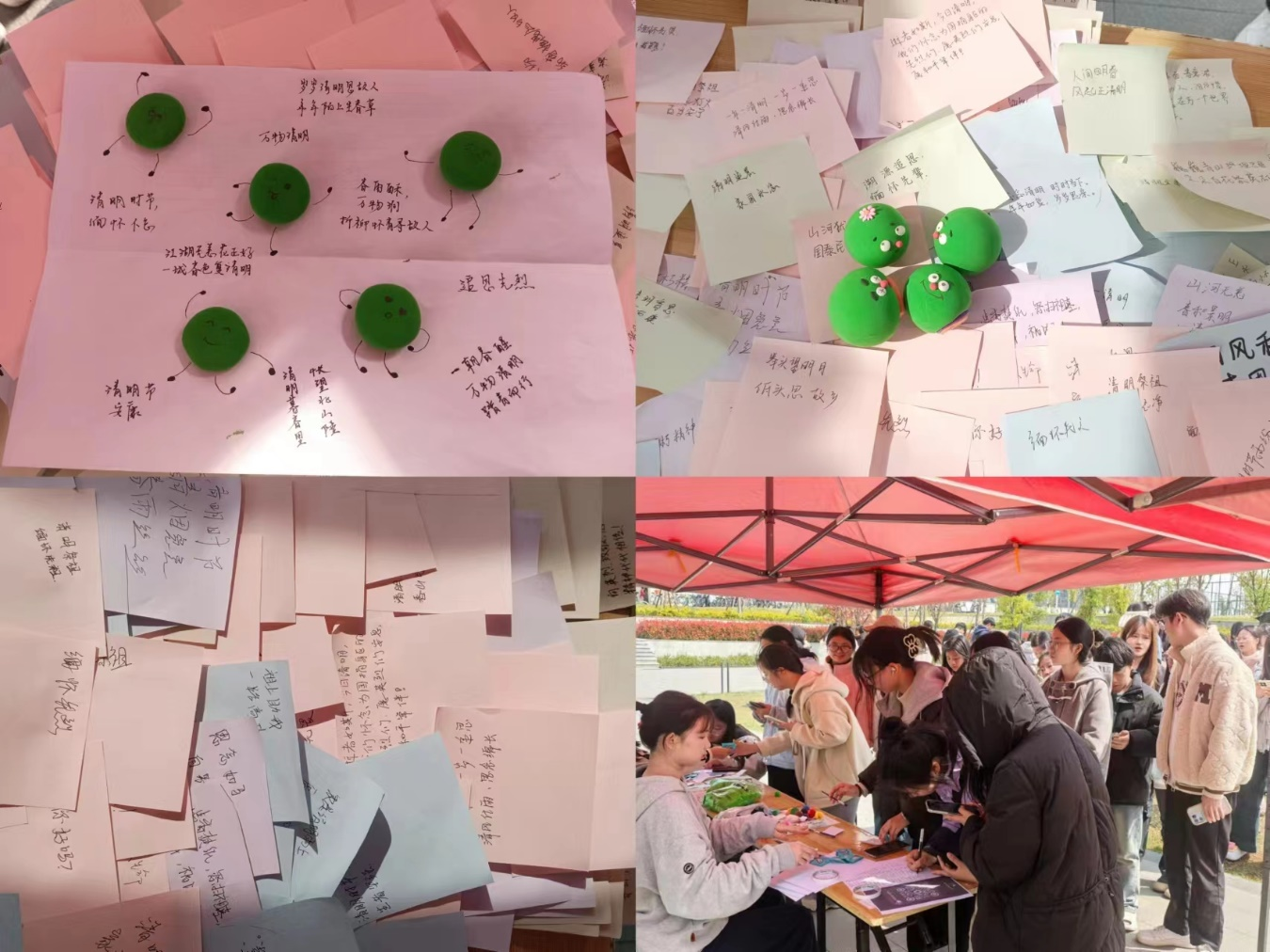 为缅怀革命先烈,厚植爱党爱国情怀,教育引导学生们感悟清明文化内涵,传承家国情怀以及践行文明新风,同时充分发挥民族传统节日思想熏陶和文化教育功能,pp电子于2025年4月1日在赣新校区的下沉广场举办了“清明寄相思,传承祭祖情”的活动。