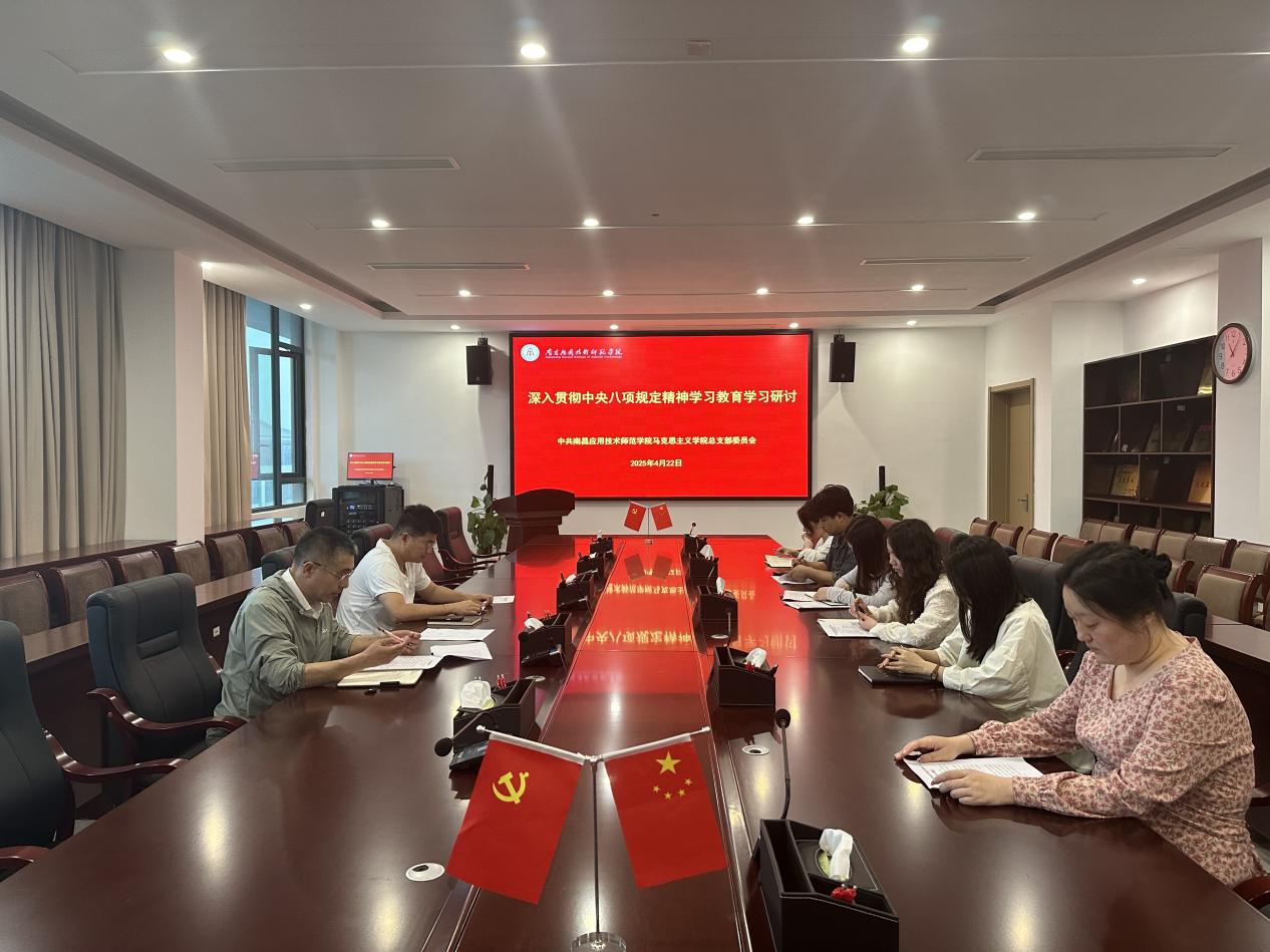 4月22日,pp电子召开深入贯彻中央八项规定精神学习教育研讨会,党总支书记张欣康主持会议,党总支委员、各党支部书记、教研室负责人及教师代表参会。
