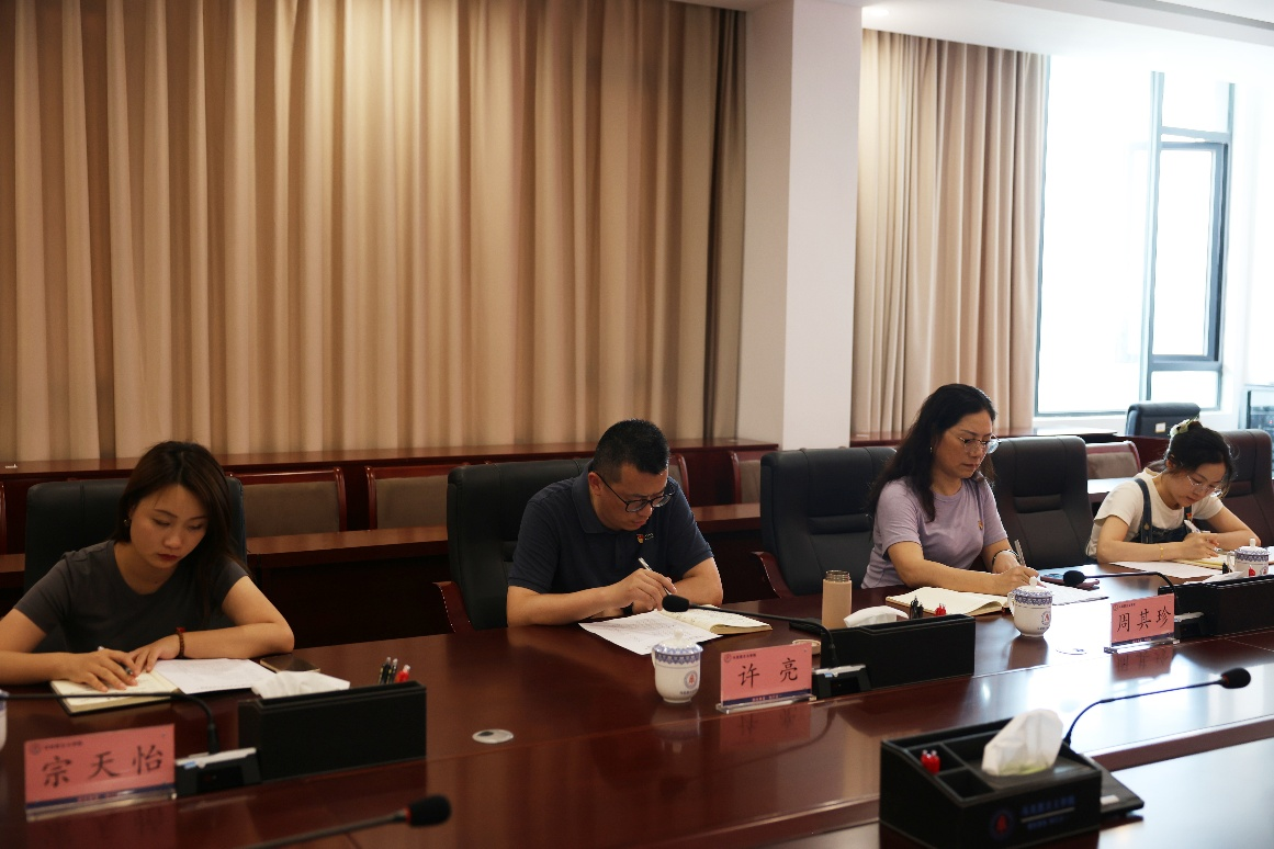 旁听列席会议的相关部门负责人及人员,党总支副书记雷欢欢、第二党支部书记吴昱杉、教师代表谢林海、学生代表朱芙玉作交流发言。