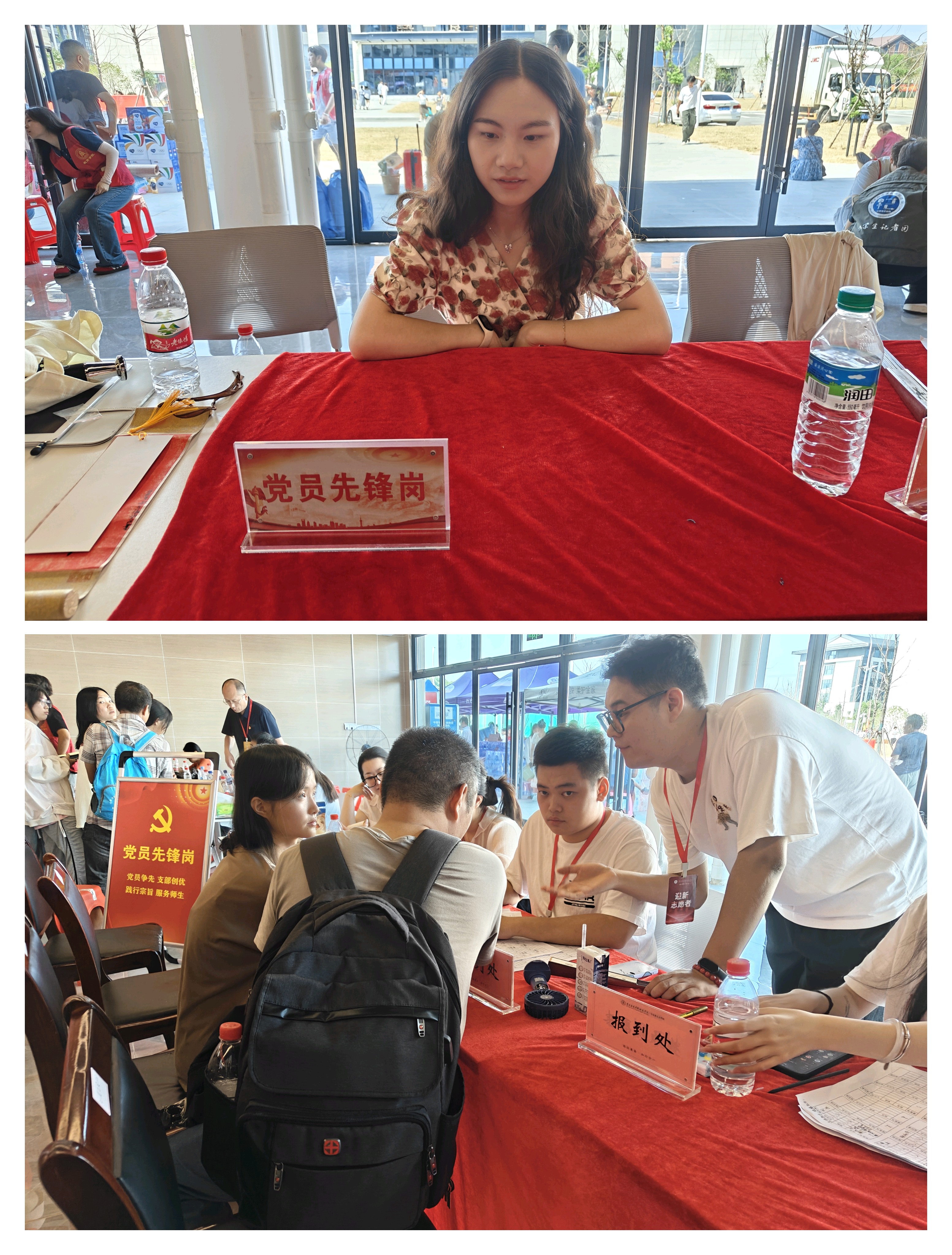 校园里随处可见的是在党员先锋岗上恪尽职守的志愿者们的忙碌身影。在报到登记点,他们主动帮助新生搬运行李,指导学生填写报到信息,用热情的笑容和贴心的服务缓解新生的陌生感与紧张感。党员们耐心细致地为新生办理入学手续,详细介绍校园文化和规章制度,帮助新生快速适应校园环境。