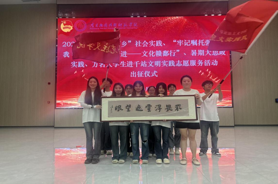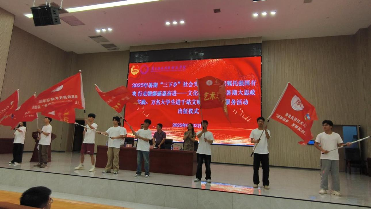 为深入学习贯彻习近平新时代中国特色社会主义思想,引导和帮助广大青年学生在实践中受教育、长才干、作贡献,进一步激发青年学子的社会责任感和使命感,2025年6月23日,pp电子星火社会实践队前往图书馆报告厅参加了2025年暑期“三下乡”社会实践、“牢记嘱托强国有我 行走赣鄱感恩奋进——文化赣鄱行”、暑期大思政实践、万名大学生进千站文明实践志愿服务活动出征仪式。