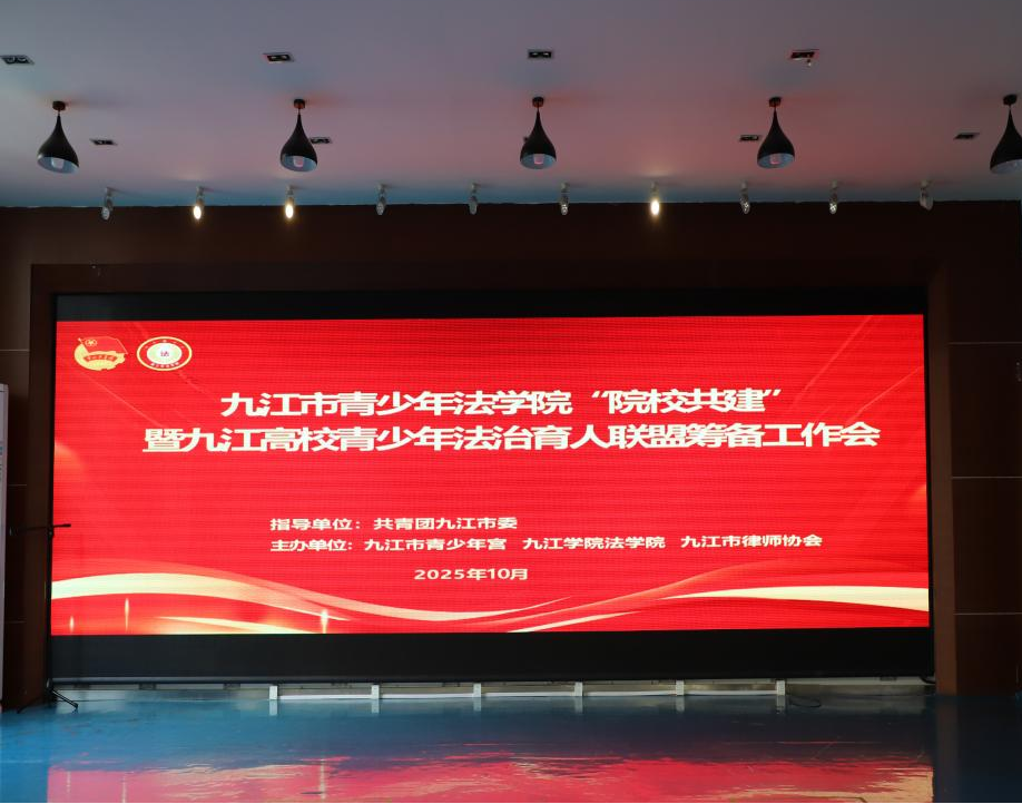 2025年10月22日下午,九江市青少年法治校地共建联盟会议在市少年宫成功举行,九江市团市委领导、市青少年宫领导、九江律师协会领导、九江市驻高校法学教师代表出席会议。我校pp电子法学系主任龚三妹及李水根老师参会。