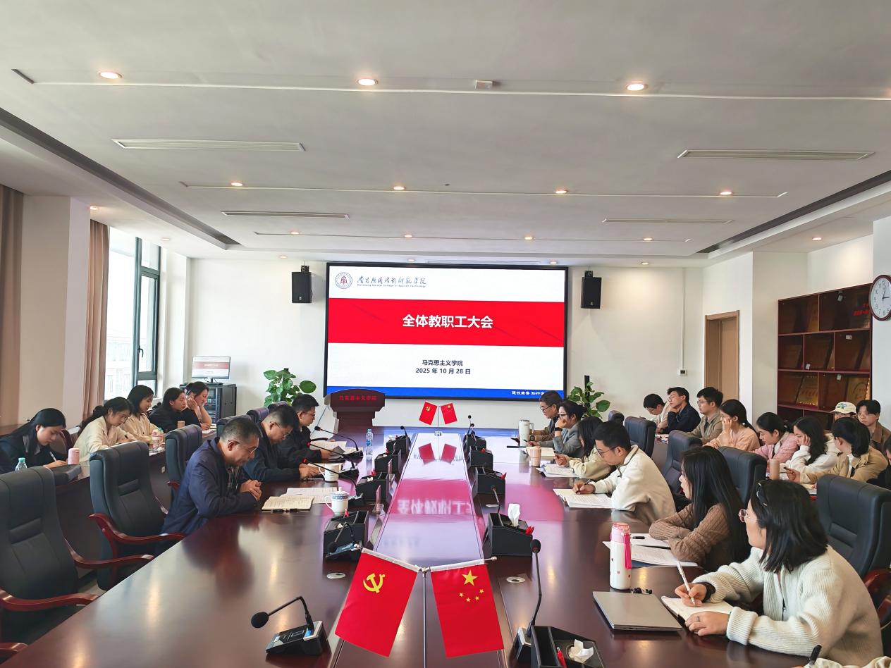 会议要求,学院全体教职工要聚焦立德树人根本任务,深化理论研究,充分发挥思政课主渠道作用,既要围绕“十五五”时期建设目标任务深耕研究、精准阐释,为党和国家事业发展贡献“智慧力量”;也要将其转化为教学资源,让学生在学习中涵养大局意识、锤炼战略眼光,切实把全会精神转化为育人实效。要统筹发展与安全,强化作风建设,坚决守牢学生安全底线,高质量完成本年度各项工作。
