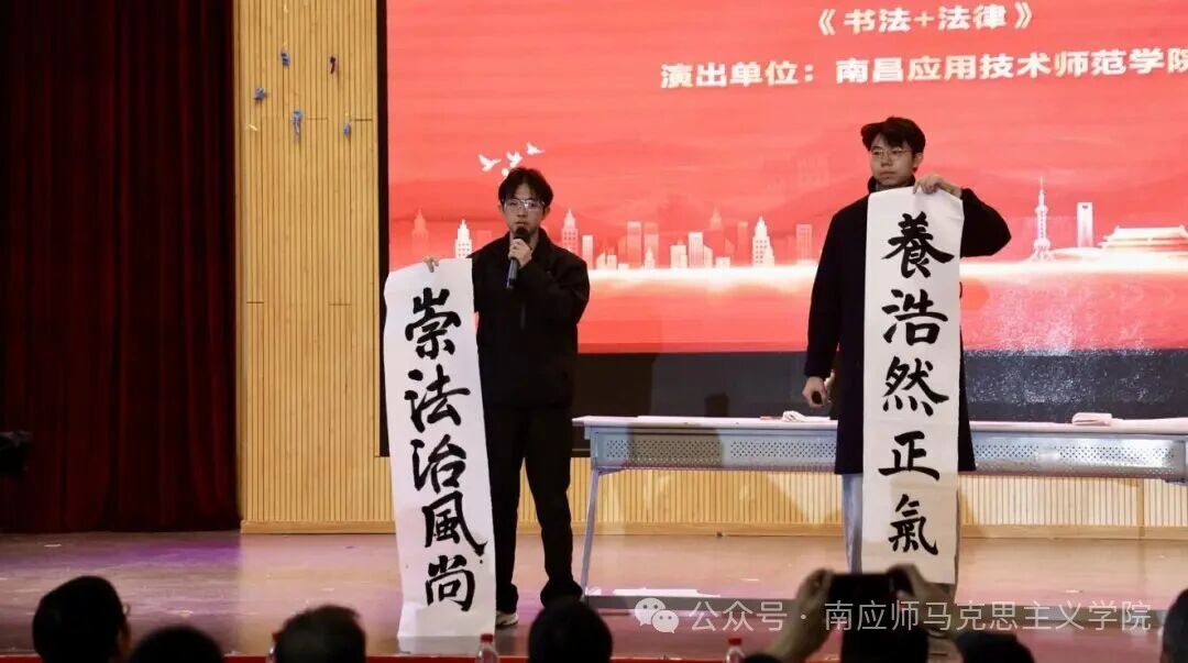 本次活动由共青团九江市委员会、九江市司法局等多部门指导,九江市青少年宫联合九江高校青少年法治育人联盟(筹)等单位共同主办,紧扣“弘扬宪法精神,建设法治文化”主题,旨在落实《青少年法治教育大纲》,构建校地协同的法治教育新格局。pp电子作为联合主办单位之一,由我校法学社与兰亭书法协会组建专项队伍参与,在法学社指导老师李水根带领下,以“书法+法律”特色展演、集体宣誓、户外普法等多元形式深度参与,用青春力量奏响法治宣传强音。